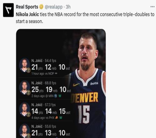 憑借這樣的表現,約基奇追平威少與大O保持的NBA歷史開季連續三雙場次紀錄,并列歷史第一,按照約基奇的能力與狀態,他下一場就有希望反超威少獨占歷史第一位置。